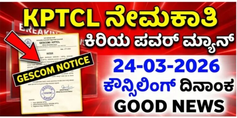 KPTCL ಮತ್ತು GESCOM ಜೂನಿಯರ್ ಪವರ್ಮ್ಯಾನ್ ನೇಮಕಾತಿ 2026ಗೆ ಸಂಬಂಧಿಸಿದಂತೆ ಪ್ರಮುಖ ನವೀಕರಣ ಹೊರಬಿದ್ದಿದೆ. ಕೌನ್ಸೆಲಿಂಗ್ ದಿನಾಂಕ ಪರಿಷ್ಕರಣೆ, ಅಗತ್ಯ ದಾಖಲೆಗಳು, ಆಯ್ಕೆ ಪ್ರಕ್ರಿಯೆ ಹಾಗೂ ಸಂಪೂರ್ಣ …