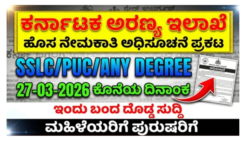 ಕರ್ನಾಟಕ ಅರಣ್ಯ ಇಲಾಖೆ 2026ರ ಅಧಿಸೂಚನೆ ಬಿಡುಗಡೆ ಮಾಡಿದೆ. ಇದು ಉದ್ಯೋಗ ಅವಕಾಶವಲ್ಲ, ಆದರೆ ಮಾಧ್ಯಮ ಮತ್ತು ಡಿಜಿಟಲ್ ಏಜೆನ್ಸಿಗಳಿಗೆ ದೊಡ್ಡ ಅವಕಾಶ. ಅರ್ಹತೆ, ದಿನಾಂಕಗಳು ಮತ್ತು …