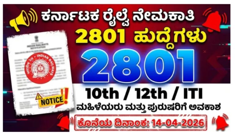 ಹುಬ್ಬಳ್ಳಿ ರೈಲ್ವೆ ನೇಮಕಾತಿ 2026 ಅಧಿಸೂಚನೆ ಪ್ರಕಟವಾಗಿದೆ. 10ನೇ, 12ನೇ ಮತ್ತು ITI ಪಾಸ್ ಅಭ್ಯರ್ಥಿಗಳಿಗೆ 2801 ಅಪ್ರೆಂಟಿಸ್ ಹುದ್ದೆಗಳು. ಅರ್ಜಿ ಪ್ರಕ್ರಿಯೆ, ಅರ್ಹತೆ ಮತ್ತು ಸಂಪೂರ್ಣ …